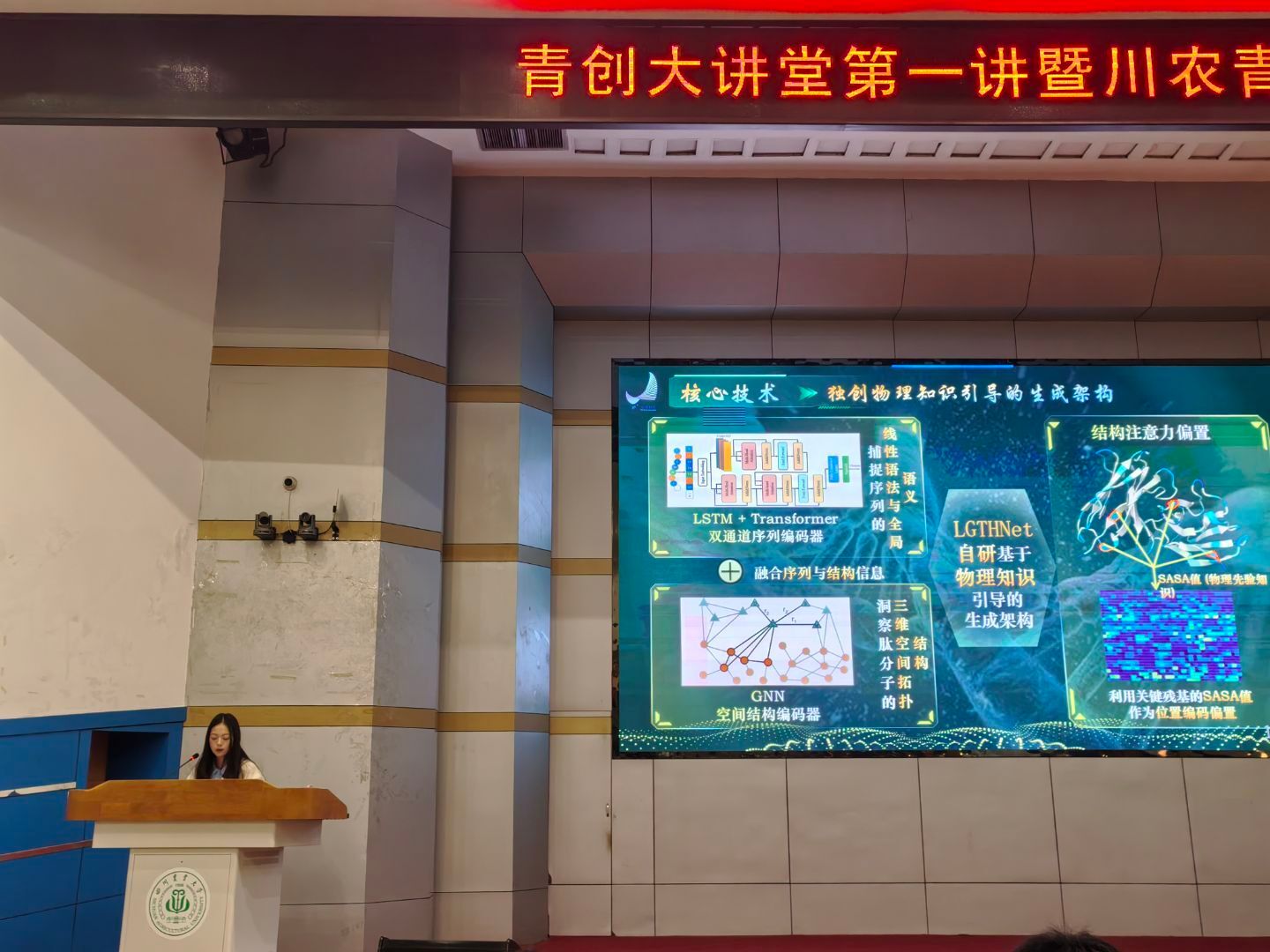 分享会上,范颖焓同学以她深度参与的“肽昱科技”项目为例,系统剖析了高水平科创赛事,特别是“挑战杯”人工智能+专项赛的备赛要点与路演核心逻辑。她的分享条理清晰、内容扎实,层层递进地展现了一个优秀项目从立意到呈现的全过程。