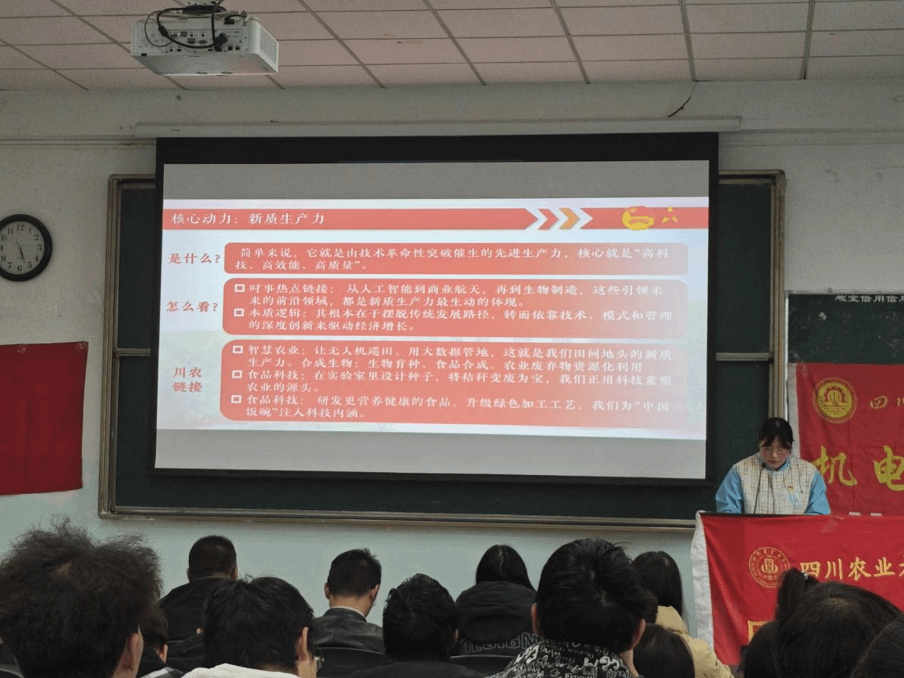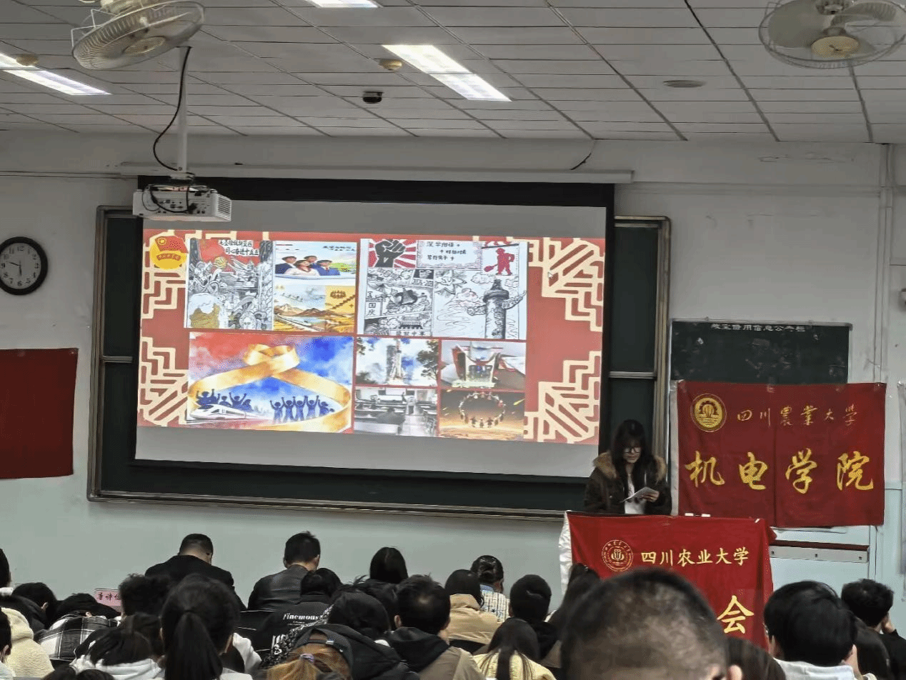 12月5日,信息工程学院大数据202504班团支部联合机电学院农机202402班团支部、电子202402班团支部、电气202504班团支部及学生无偿献血服务协会团支部、学生戏曲社团支部联合开展的“深悟全会精神,奋进崭新征程”主题班团活动于10教A403顺利开展。活动以“青言青语”传递党的创新理论,引导青年学子坚定理想信念,明晰个人成长与国家发展的紧密联系。150名学子参与其中。
