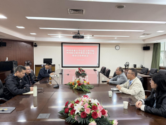 10月28日下午,我院与四川虹信软件股份有限公司在综合楼414会议室成功举行院企合作交流座谈会。四川虹信软件股份有限公司综合管理部负责人程勇、业务中心泛ERP事业部负责人文阳、业务中心高级项目经理邱艳萍,以及我院党委书记王中成,副院长李军、段旭良等出席座谈会。