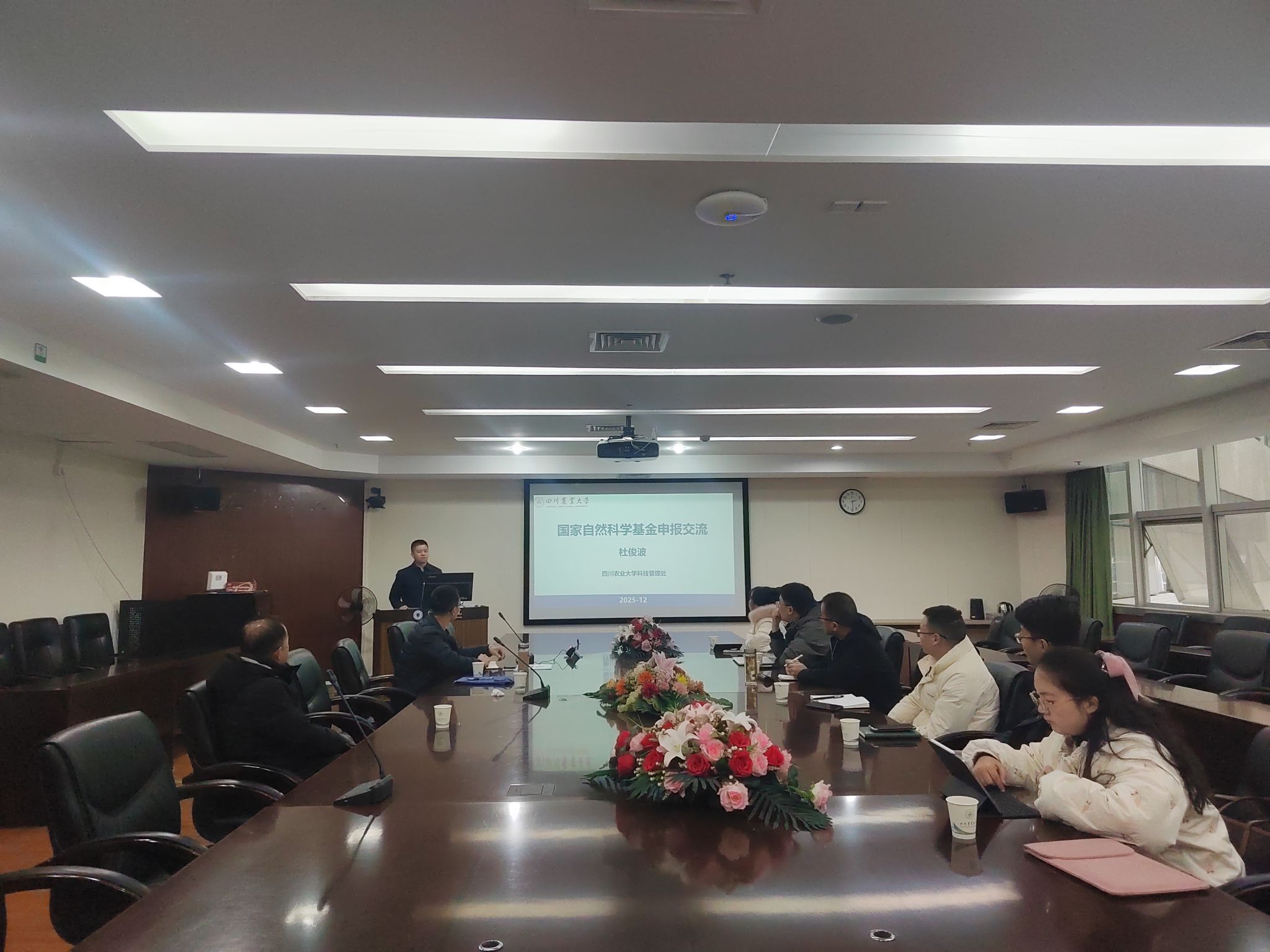 为扎实做好2026年度国家自然科学基金项目申报组织工作,有效提升项目申报质量与竞争力,学院于12月22日成功举办了国家自然科学基金申报专题辅导会。会议特邀学校科技处副处长杜俊波教授担任主讲嘉宾,为学院教师进行了全面、深入的申报指导。学院副院长段旭良、拟申报基金的教师、科研秘书等参加了本次会议。