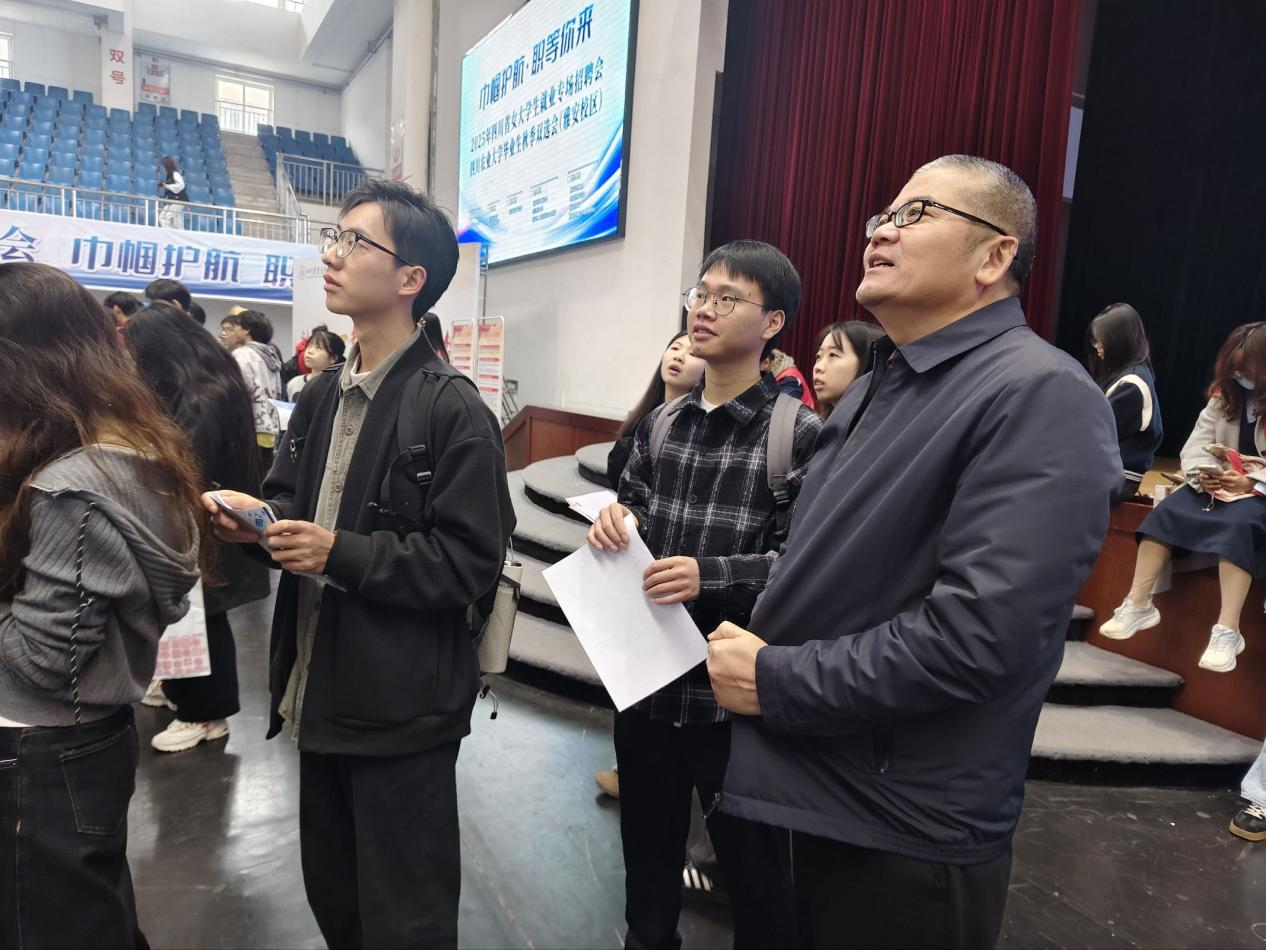 此次双选会是学院落实就业 “一把手工程” 的重要举措。依托 “院领导 - 班主任 - 就业小秘书” 协同联动机制,学院前期通过 “日更新、周报告、半月谈” 工作体系精准推送岗位信息,针对考研、考公、就业等不同需求群体提供分层分类指导。