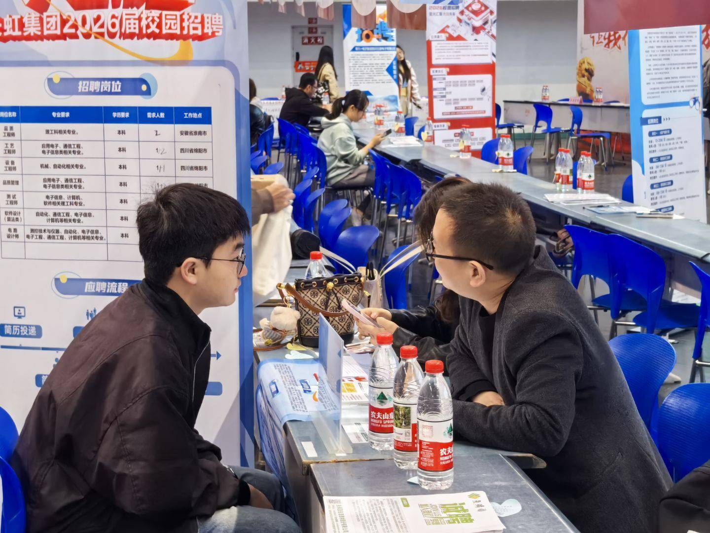 现场人头攒动,气氛热烈。毕业生手持精心准备的简历,在企业展位前与 HR 深入沟通岗位要求、技术需求及职业发展路径。企业的现场面试区前,学生们有序等候,结束面试的毕业生互相交流着面试心得,整个场馆里满是青春逐梦的活力。