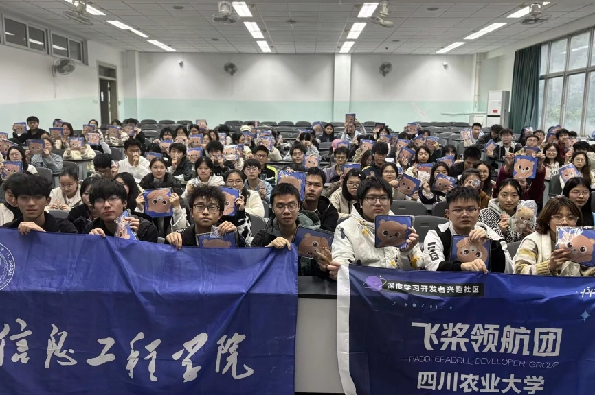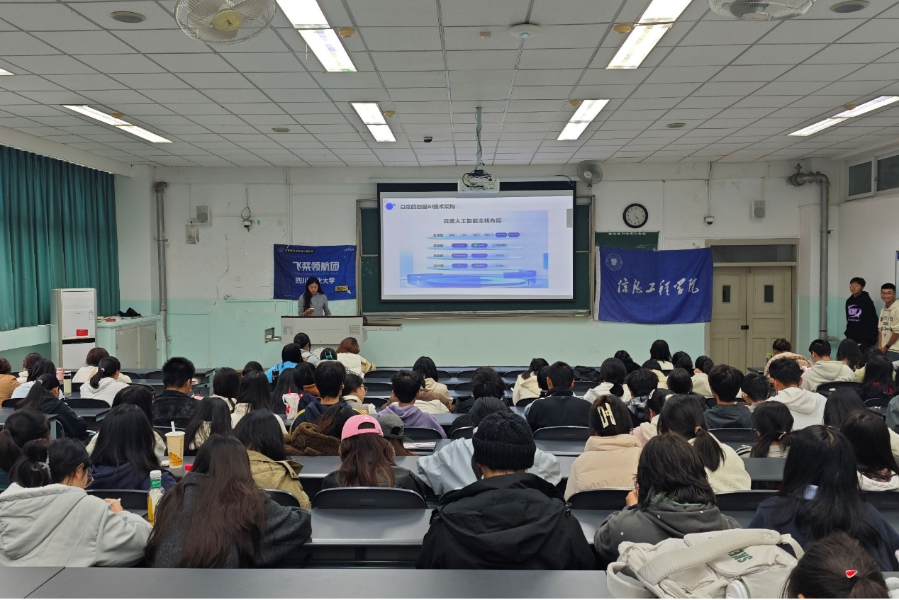 2025年11月6日下午,由百度飞桨领航团和四川农业大学信息工程学院学习部共同举办的“AI探知之旅”主题讲座在雅安校区成功举办。讲座特邀百度AI技术生态西南区域高级产品运营经理段喜萍老师作为主讲嘉宾,段老师在人工智能校企合作与产教融合方面经验丰富,长期致力于在课程建设、科创竞赛及人才培养等方面推动学界与业界的有效连接。本次活动通过线下组织与线上名师讲解相结合的方式,为同学们呈现了一场内容丰富、结构严谨的人工智能启蒙课,引领大家迈出成为AI开发者的第一步。