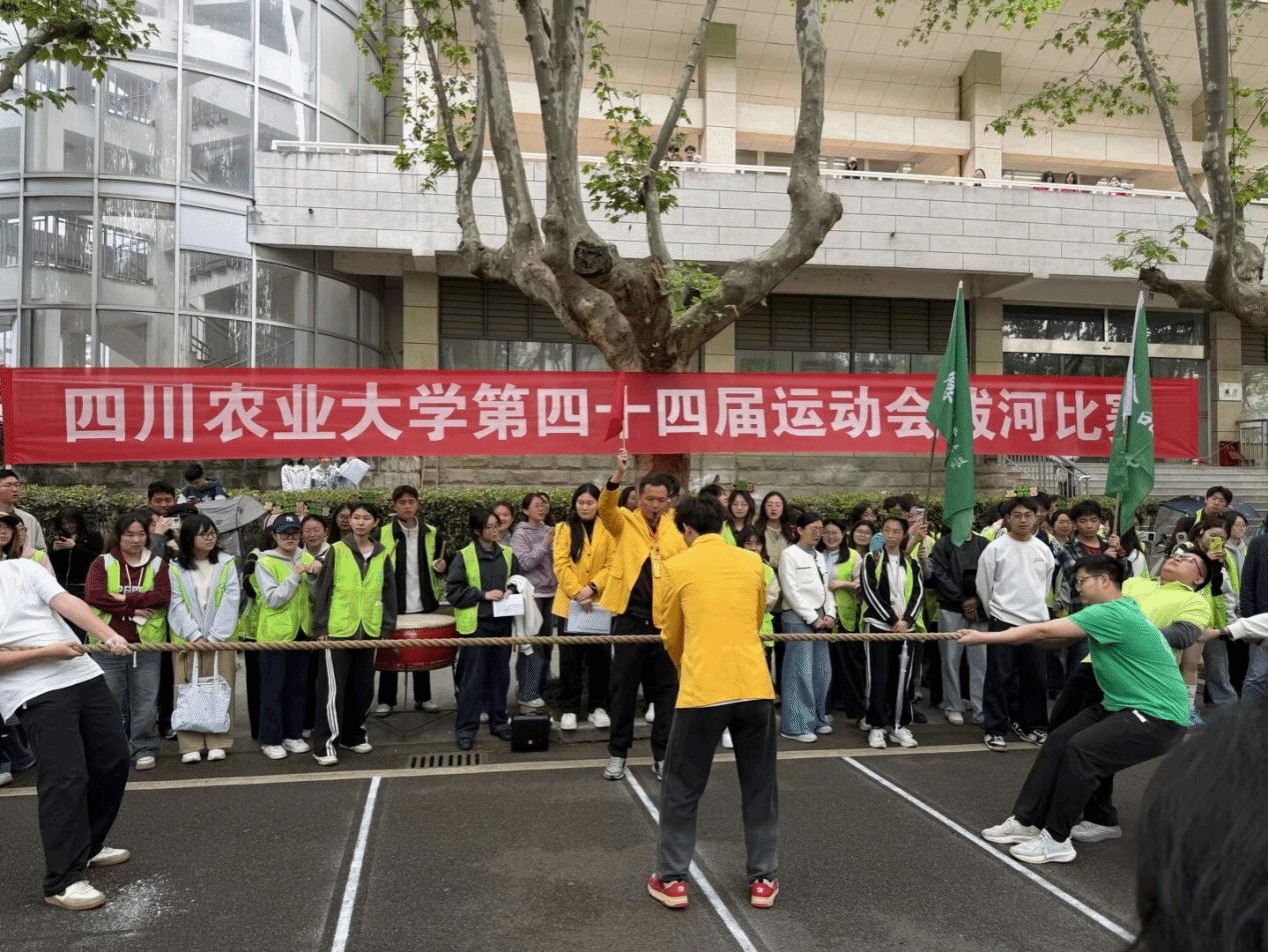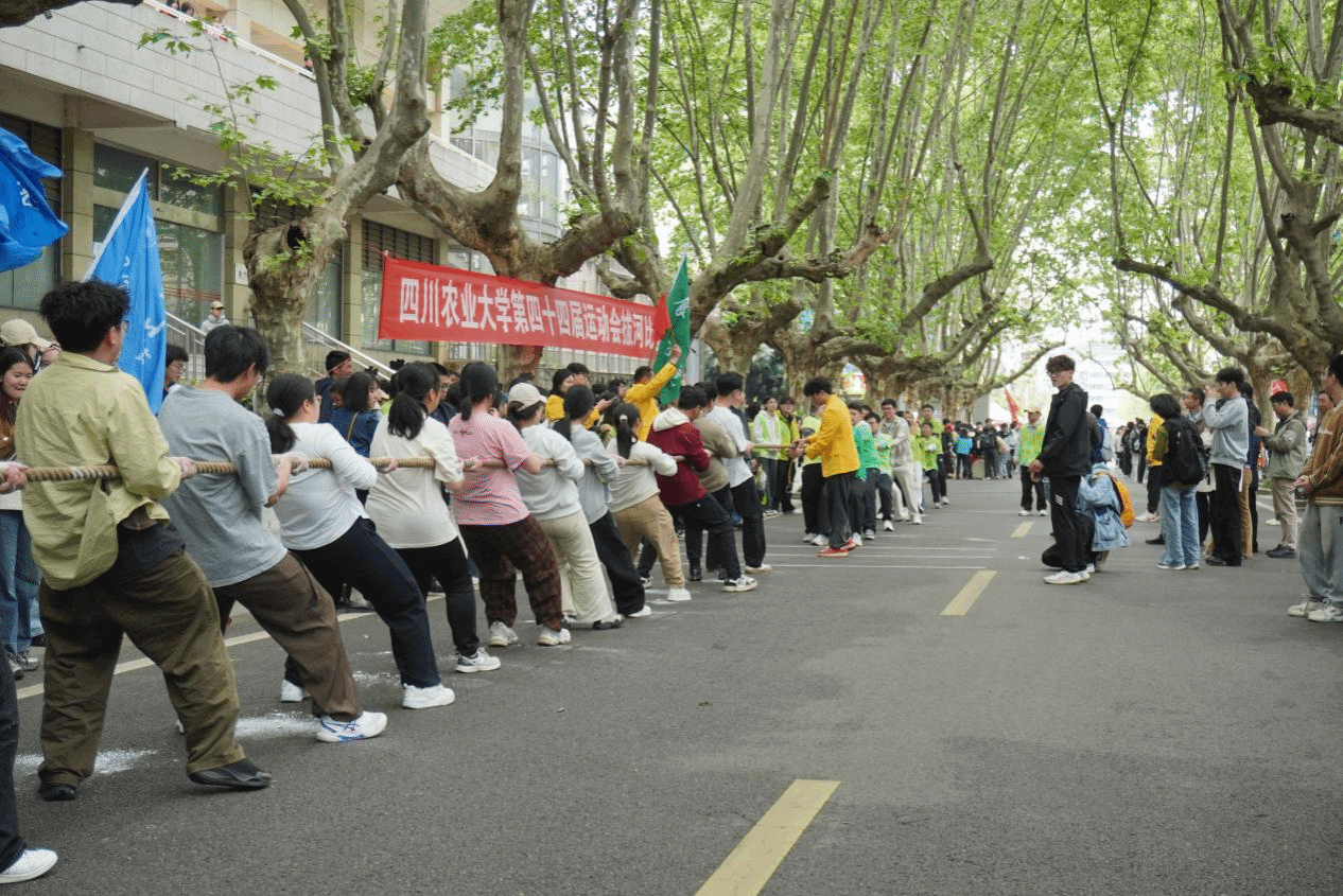 4月8日中午,四川农业大学“百廿川农·薪火相传”第四十四届校运会拔河比赛小组赛在梧桐大道顺利举行。