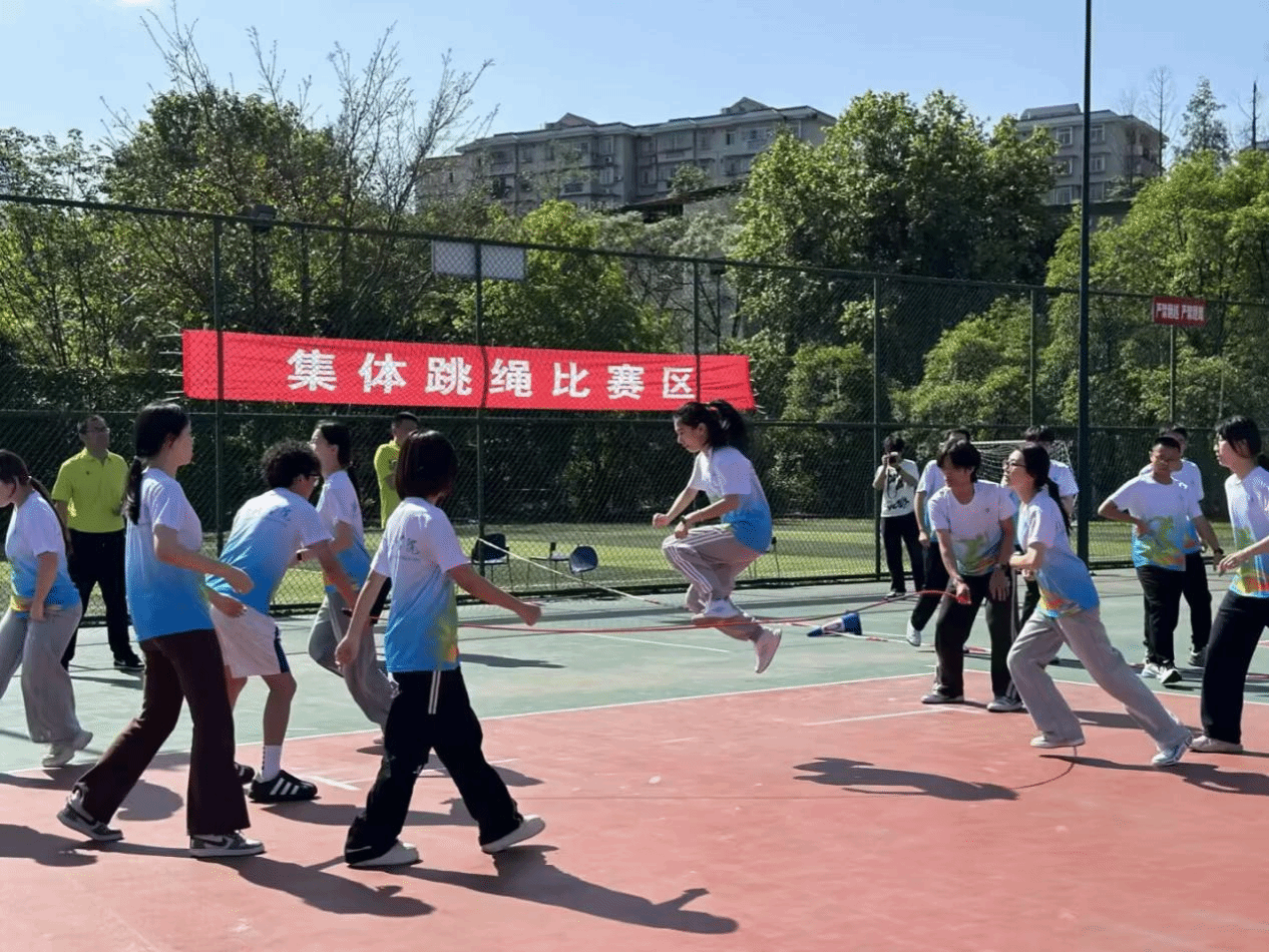 摇绳队员身姿稳健,手腕轻扬间,跳绳如银蛇穿梭,划出流畅的弧线;跳绳队员身姿轻盈、步伐统一。计数声、摇绳的“呼呼”声、赛场边的呐喊声交织在一起,构成了赛场最动人的旋律。从赛前的反复磨合到赛中的从容应对,每一次跳跃都凝聚着团队的汗水,每一次配合都彰显着团结的意义。这份荣誉,属于每一位全力以赴的队员,更展现了川农学子凝心聚力、奋勇拼搏的团队风采。