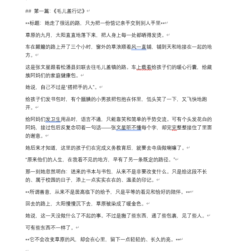 本次活动以 “分享志愿故事,传递青春温度” 为核心,面向雅安校区全体同学开展。同学们可围绕校园志愿值守、社区暖心帮扶、支教感动瞬间、大型赛事坚守等内容,将志愿服务中的真实经历、成长感悟与温暖瞬间,撰写成 800 字左右的小故事并线上提交。活动不设固定主题限制,鼓励大家用文字还原志愿场景细节与内心触动。