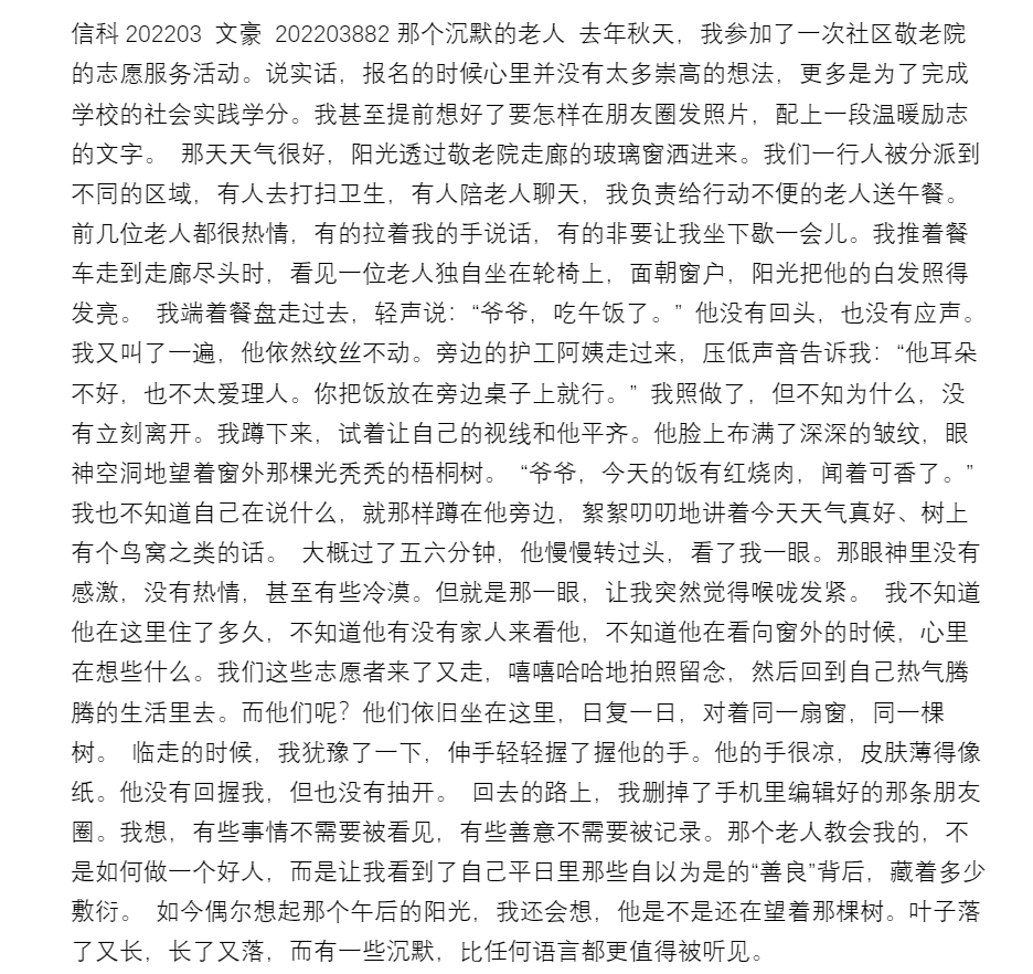 接下来,学院将评选优秀作品并通过推文平台展示,让志愿故事被更多人看见,让志愿精神在校园广泛传递。本次征集活动既是志愿故事分享会,也是一堂生动的思政实践课,助力同学们重温志愿初心,带动更多青年主动参与志愿服务。