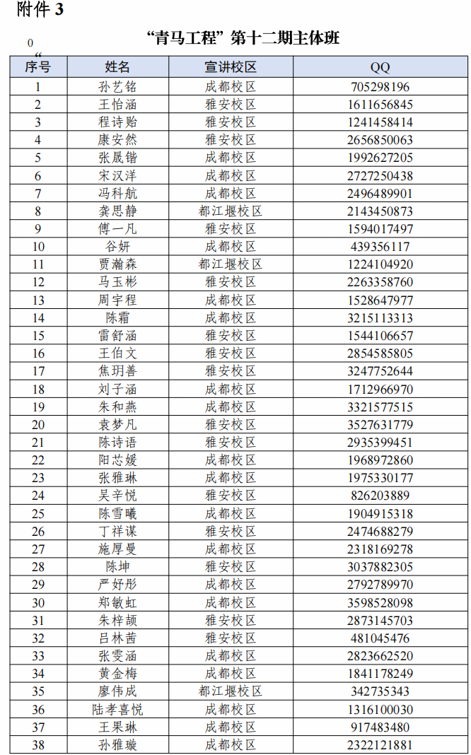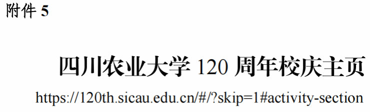引导团员青年深入了解四川农业大学120年办学历史与办学成果(附件5),学习学校在农业科研、人才培养、乡村振兴服务等领域的光辉历程,感悟“川农大精神”的时代内涵,各支部可通过校史参观、校友分享、主题征文等形式,深化扎根农业、服务“三农”的初心使命。鼓励团员青年以百廿校庆为契机,将专业学习与农业科技创新、基层实践服务紧密结合,在服务乡村振兴中实现个人成长,续写川农大服务农业现代化的青春篇章。
