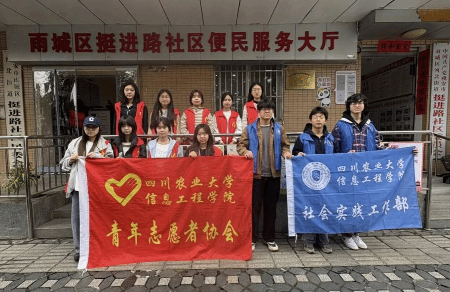 3月30日上午,四川农业大学大数据202504班在雅安市雨城区挺进路社区开展了以“青心护绿,志愿守安”为主题的小班进社区志愿活动。全班共有11名同学积极参与,用实际行动践行志愿服务精神,助力社区环境改善与安全建设。