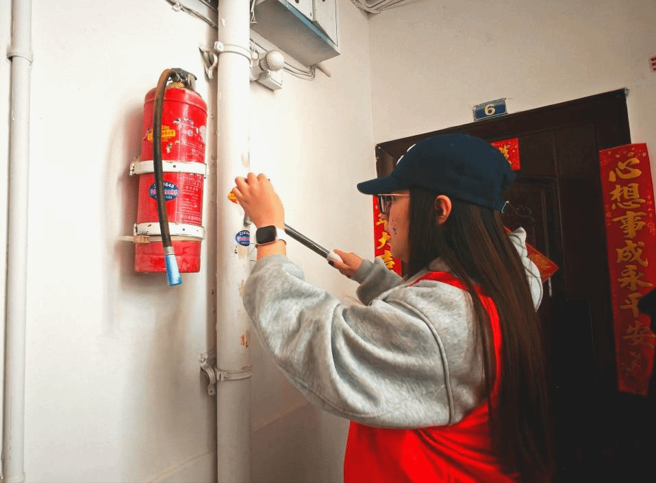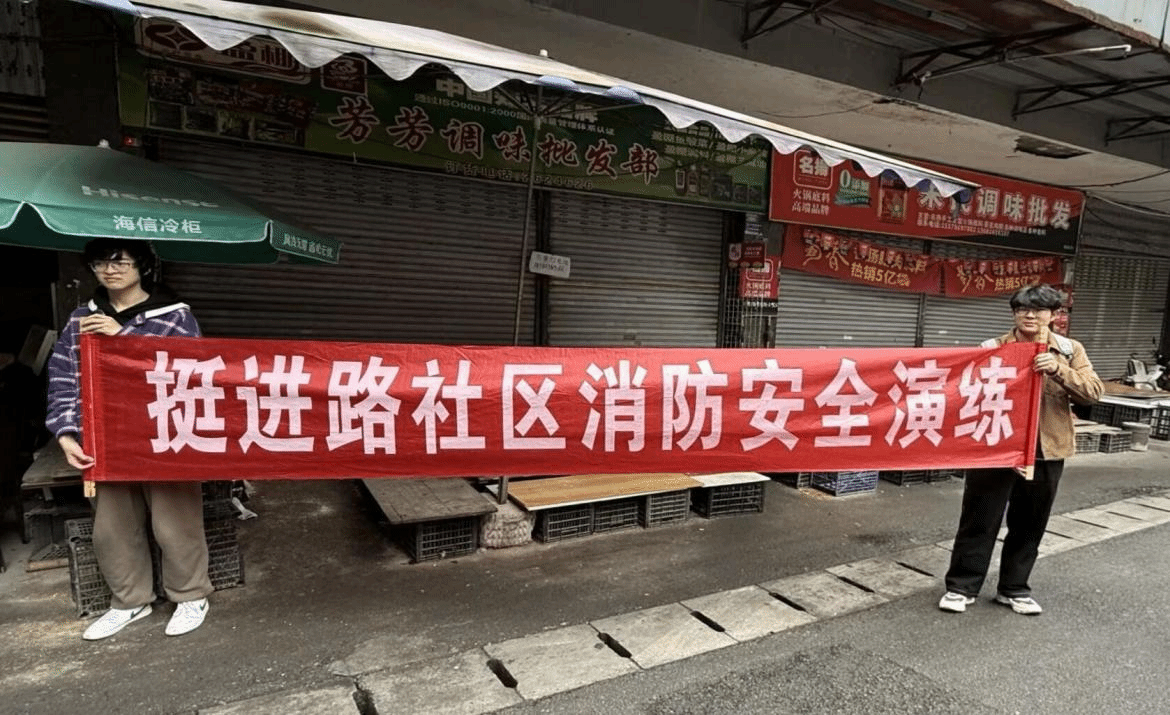 环境整治任务完成后,全体同学参与挺进路社区组织的消防演练活动。社区安全员首先讲解火灾发生时的正确逃生要领,包括低姿前行、湿毛巾捂口鼻、不乘坐电梯等关键知识。随后,模拟火灾警报拉响,同学们在安全员的指挥下,迅速按预定疏散路线有序撤离至室外空旷区域。整个演练过程紧张有序、动作规范,有效提升大家应对突发火灾的自救互救能力。